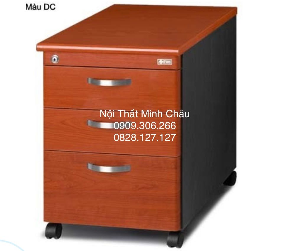 + Hộc di động: Ngăn kéo 3 ngăn, có khóa, hồi hậu phủ Vinyl Hàn Quốc ray bi. Chân tròn di động. Kích thước:407x521x555